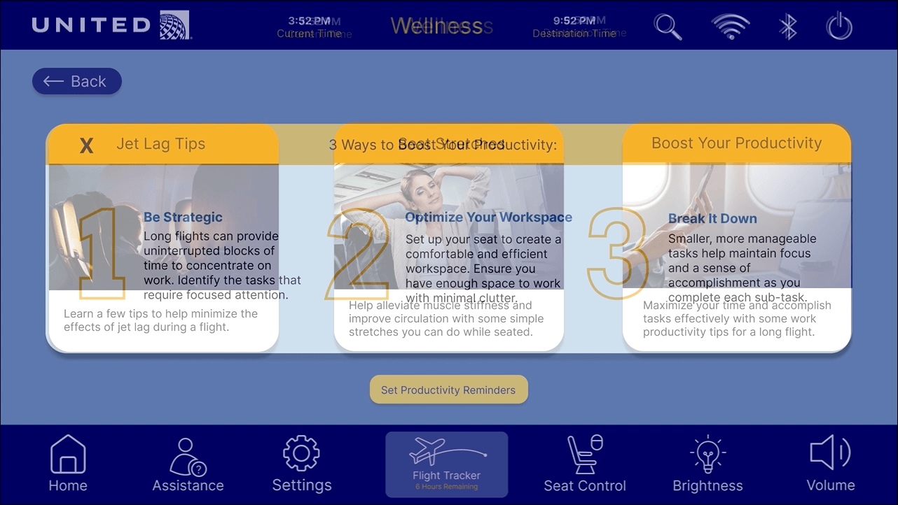Find a new wellness category that supports productivity with custom reminders to motivate you to stay on task and take breaks throughout the flight.